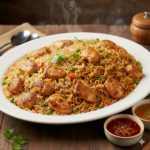 $15Fried rice and noodles with tender chicken pieces. Regular or Schezwan flavour.